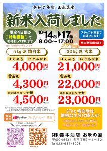 【予告】新米セール開催【10/6,7】