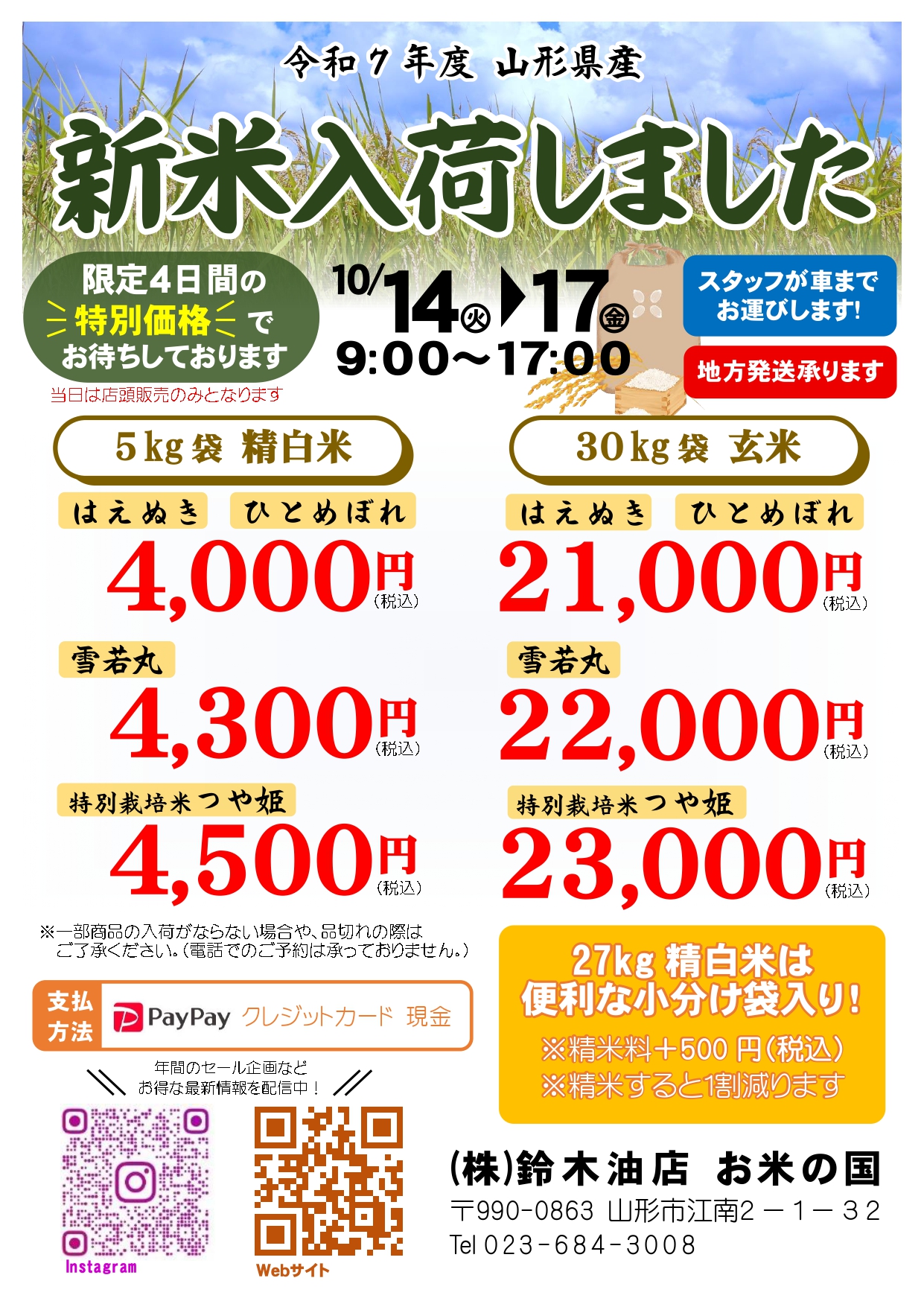 お待たせしました。毎年ご好評の【新米セール】今年も開催します。